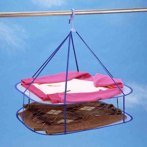 ちなみにこういうハンガータイプの平干し台だと、乾かし終わったら片付けられるので邪魔になりませんね。